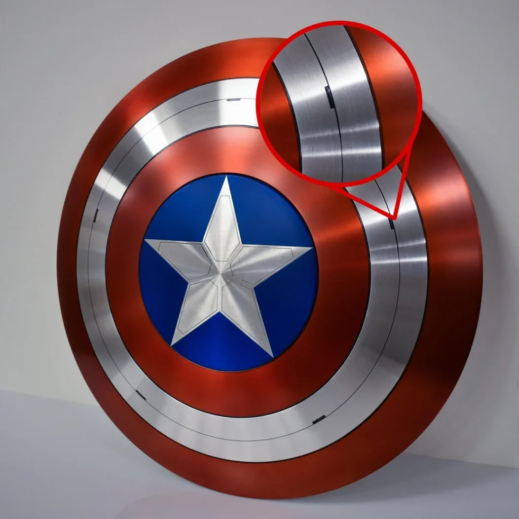 โล่ของกัปตันอเมริกาเป็นสิ่งประดิษฐ์จากโลหะหายากที่มีชื่อว่า ไวเบรเนียม (Vibranium) ซึ่งมีต้นกำเนิดจากประเทศสมมติในจักรวาล Marvel ที่ชื่อว่า วากานดา (Wakanda) วัสดุชนิดนี้มีคุณสมบัติพิเศษที่หาไม่ได้ในโลกจริง มันสามารถดูดซับ แปรเปลี่ยน และสะท้อนพลังงานได้อย่างมหาศาล